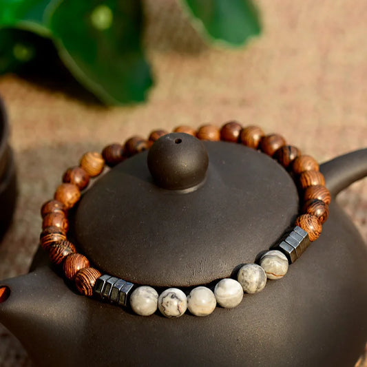 6MM Natural Wood & Lava Stone Bracelet