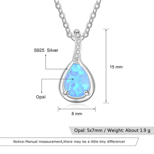 925 Sterling Silver Water Drop Opal Pendant Necklace