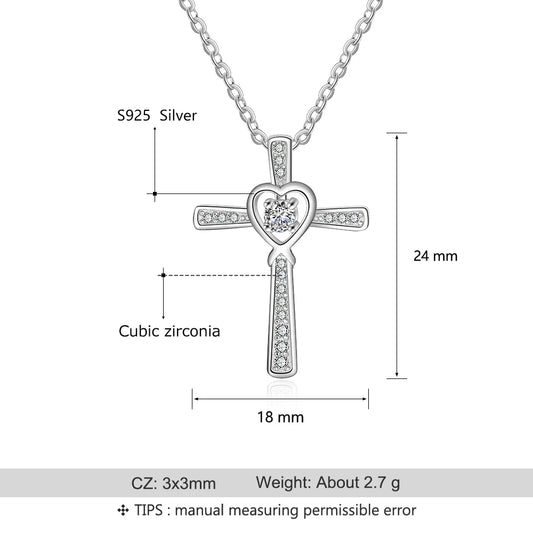 Classic 925 SterlinClassic 925 Sterling Silver Heart Cross Pendant Necklaceg Silver Heart Cross Necklace Full Zirconia Paved Pendant Necklaces for Women Fine Jewelry (Lam Hub Fong)