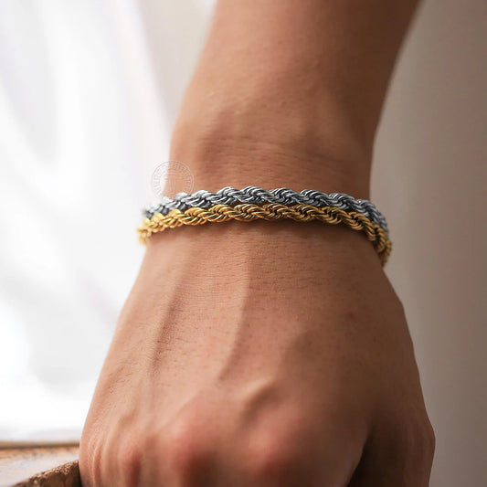 BONISKISS Men's Two-Tone Stainless Steel Rhombus Link Bracelet