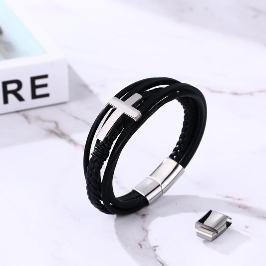 BONISKISS "To My Son" Cross Leather Bracelet – Multilayer Braided Design