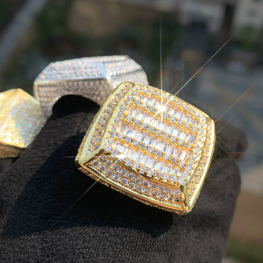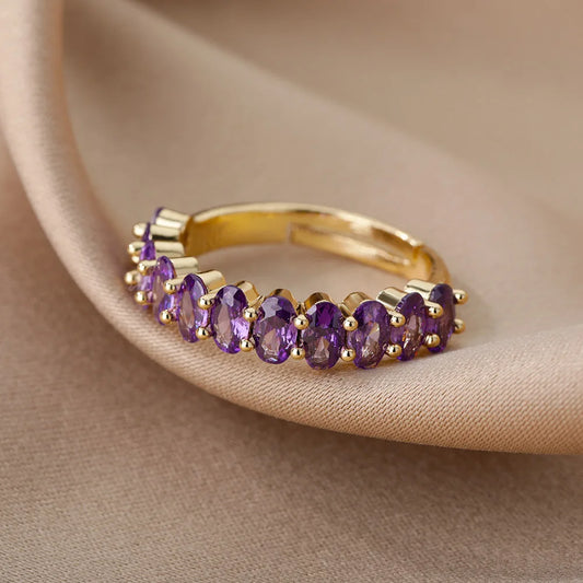 Gold Geometric Line Ring – Adjustable Stainless Steel Zircon
